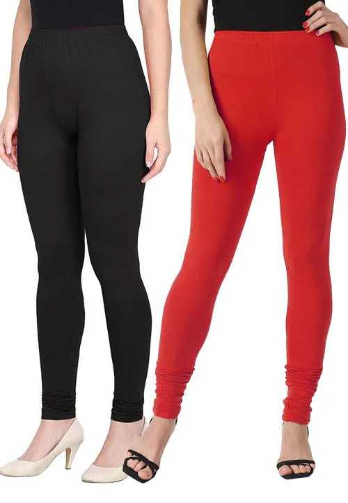 KEX Black Red Solid Cotton Churidar Length Legging Combo Legging Combo Girls Legging Combo Churidar Legging Combo