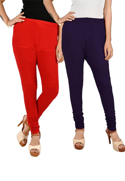 Kex Red Blue Solid Cotton Churidar Length Leggings women Leggings Girls Leggings Leggings for women Ruby Leggings