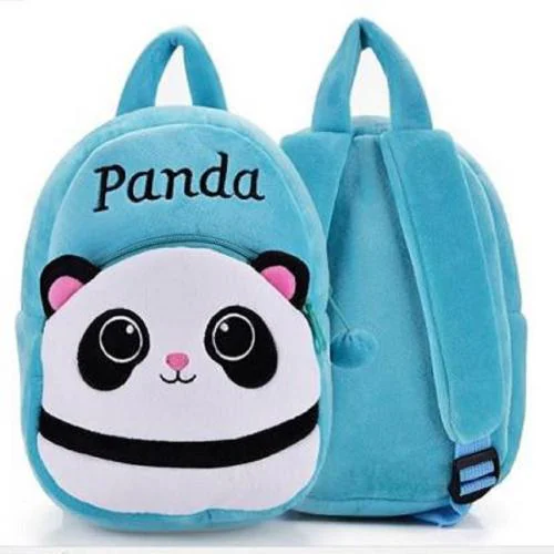 Kiddiewink Cute Kid's Soft Velvet School Backpack (Panda_Blue)