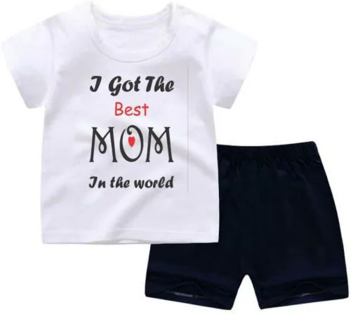 KIDDY STAR Boys White and Black Printed Cotton Blend T-Shirt and Short Set, 5 - 6 Years