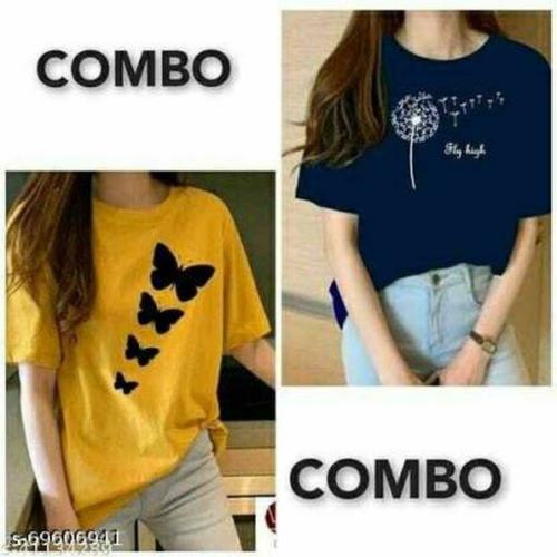 KIDDY STAR Women Multicolor Graphic Print Cotton Blend T-Shirt - M (Pack of 2)