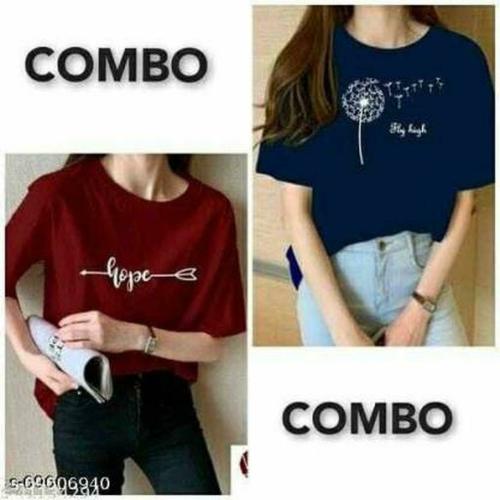 KIDDY STAR Women Multicolor Graphic Print Cotton Blend T-Shirt - XL (Pack of 2)