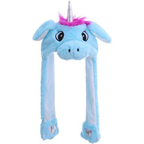 Kiditos Plush Unicorn Hat Moving Ear, Funny LED Glowing Headwear Bunny Hat Cap for Girls Kids, Blue