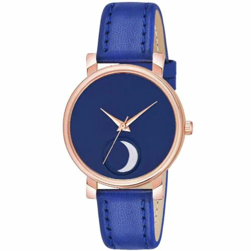 KIROH Analogue Chand Dial Leather Strap Watch for girls and women(Blue)