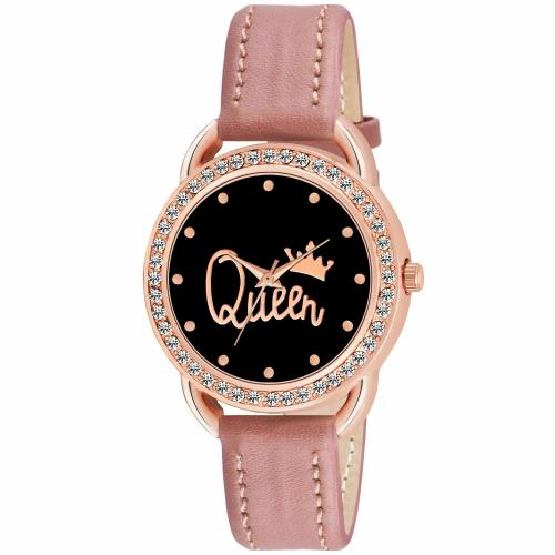 KIROH Analogue Queen Designer Dial Leather Strap Watch for girls and women(Peach)