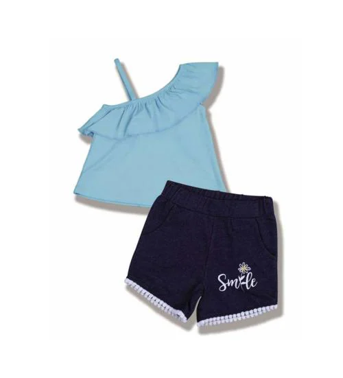 KITEX Baby Girls Knee length Brown Top & Blue Shorts Colour 22070G