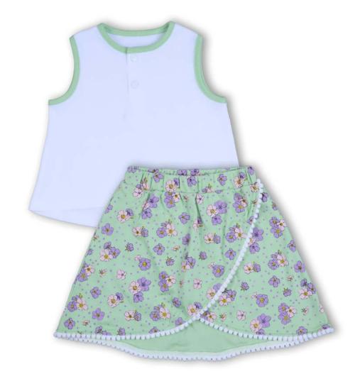 KITEX Baby Girls Sleeveless Knee length Pink Top & Sky Blue Skirt 22069G