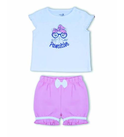KITEX Baby Sleeveless Girls Knee Length Red Top & Sky Blue Shorts 22067G