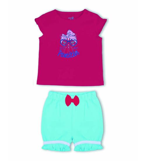 KITEX Baby Sleeveless Girls Knee Length Red Top & Sky Blue Shorts 22067G