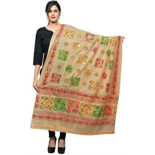 KKC -KIANA DRESSES Women Beige Embroidered Pure Cotton Dupatta
