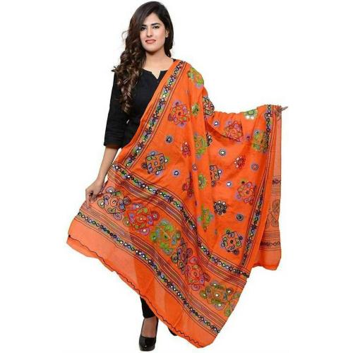 KKC -KIANA DRESSES Women Orange Embroidered Pure Cotton Dupatta