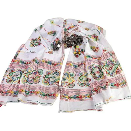 KKC -KIANA DRESSES Women White Embroidered Cotton Blend Dupatta
