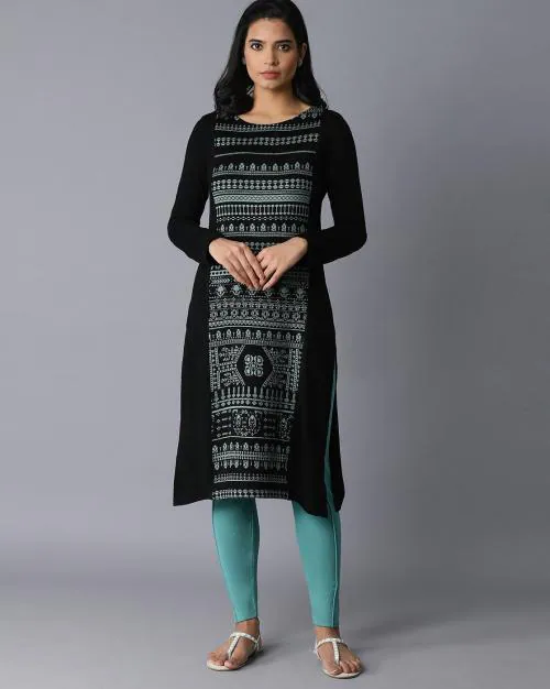 Knitted Round-Neck Straight Kurta