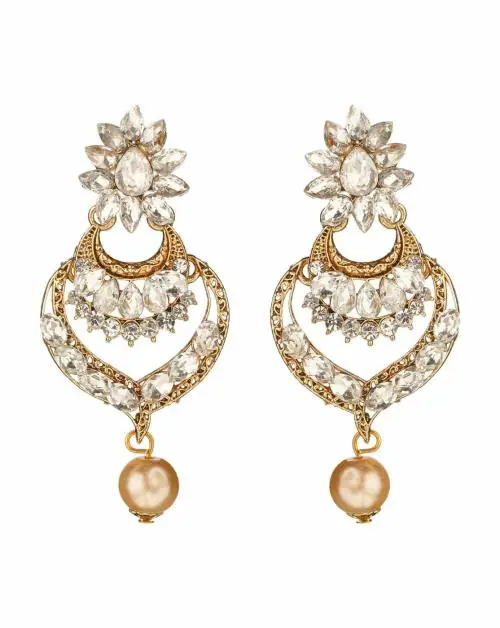 Kord Store Traditional Heart Shape White Stone Gold Plated Dangle Earring For Women