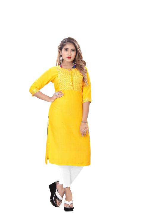 KRIPRARECHI PRESENTS RAYON YELLOW COLOR KURTA FOR WOMENS