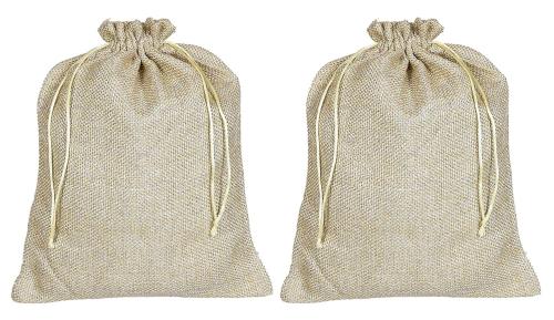 Kuber Industries Gold Canvas Potli Bags with Drawstring (pack of 2)