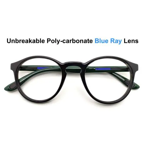 Kumsons Round Unisex Blue Cut Spectacle with Anti-glare for Eye Protection Zero Power, Standard Size