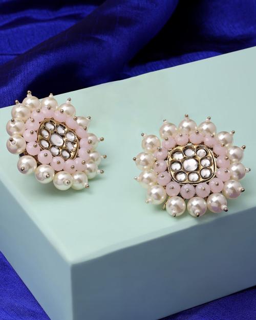 Kundan & Pearl Statement Ethnic Studs - ZPFK15179