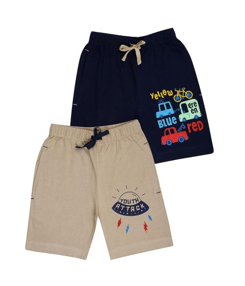 KYDA KIDS Boys Cotton Printed Regular Fit Pack of 2 Shorts