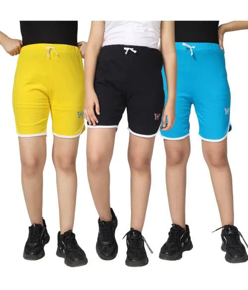 KYDA KIDS Girls Cotton Plain Regular Fit Pack of 3 Shorts