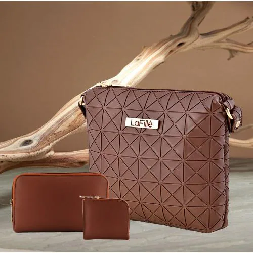 LaFille 3D Texture Sling Bag for Women & Girls | Ladies Purse & Handbags | Brown (Pack of 3) | DGN225