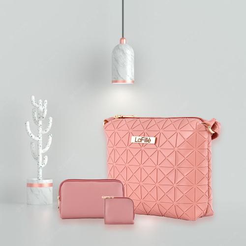 LaFille 3D Texture Sling Bag for Women & Girls | Ladies Purse & Handbags | Pink (Pack of 3) | DGN225
