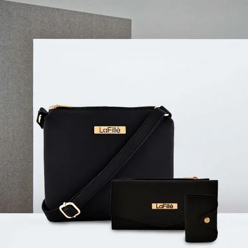 LaFille Sling Bag For Women & Girls | Set of 3 Combo | Ladies Purse & Handbags for Office & College (Black) | DGN324