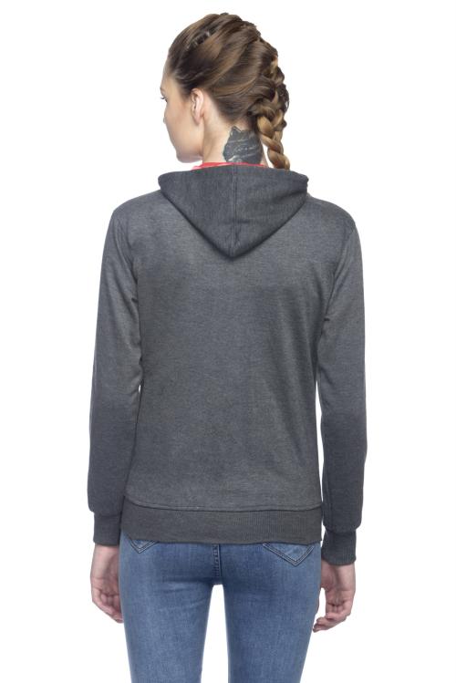 Lambency Dark Grey Cotton Blend Solid Hooded Sweatshirt