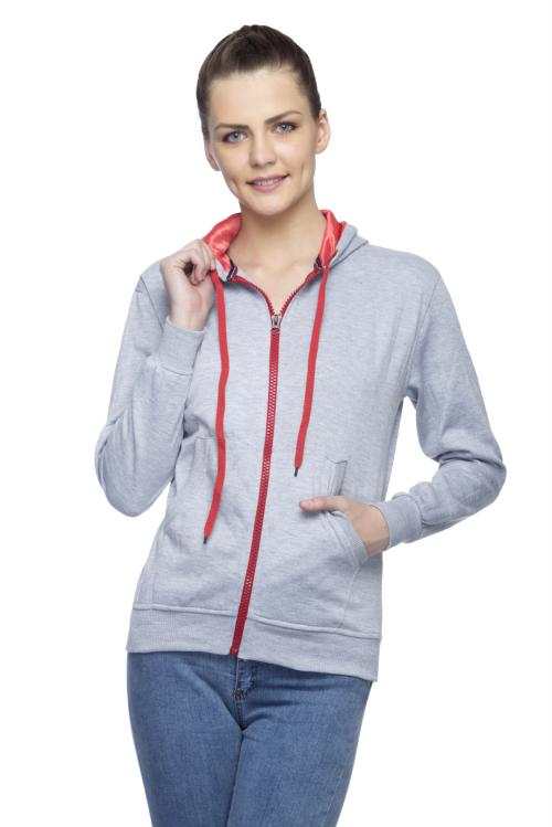 Lambency Grey Cotton Blend Solid Hooded Sweatshirt