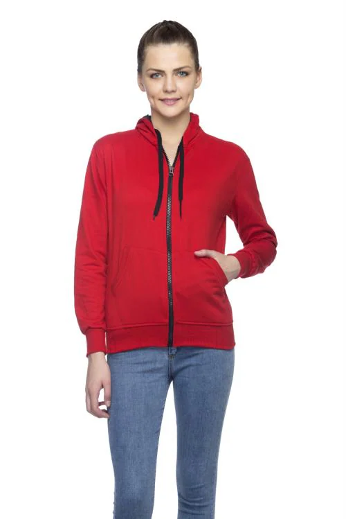 Lambency Red Cotton Blend Solid Hooded Sweatshirt
