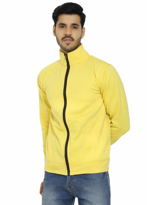 Lambency Yellow Cotton Blend Solid Sweatshirt