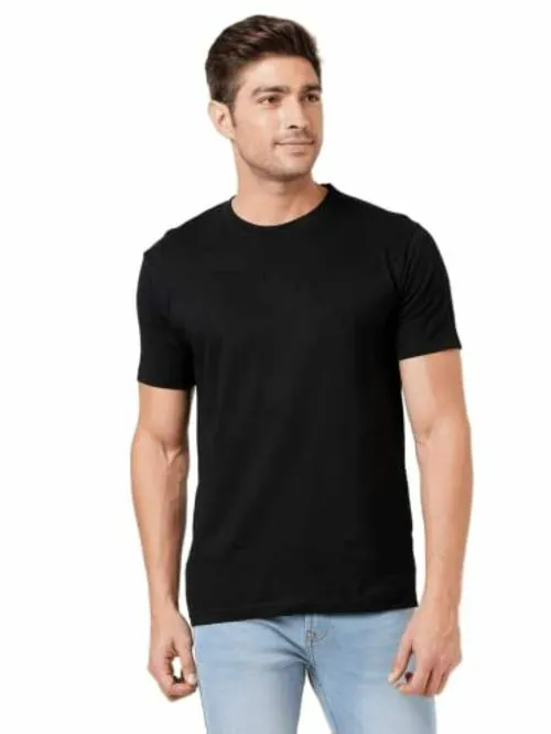 Lbee Men Black Solid Cotton Round Neck T-Shirt