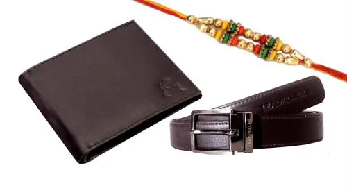 - Not in the same city as your brother send him your love and affection on this auspicious occasion in the form of this exclusive rakhi hamper. This rakhi combo gift set includes a classic mens leather wallet and a beautiful golden red rakhi to mark the eternal love and affection which holds the brother-sister relationship.