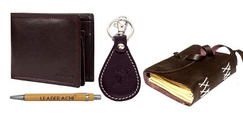 Leaderachi Men Leather Black Brown Wallet With Diary Key Ring And Pen (Haleatherswkpd-8014Br)