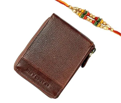 - Not in the same city as your brother send him your love and affection on this auspicious occasion in the form of this exclusive rakhi hamper. This rakhi combo gift set includes a classic mens leather wallet and a beautiful golden red rakhi to mark the eternal love and affection which holds the brother-sister relationship.