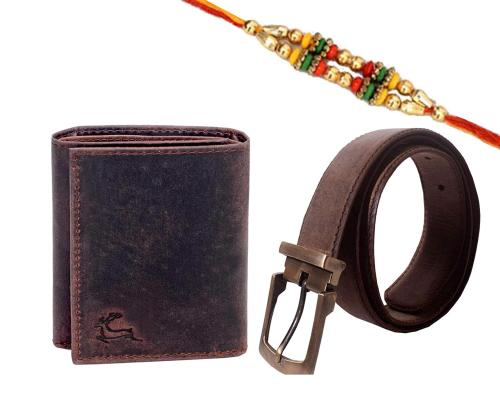 - Not in the same city as your brother send him your love and affection on this auspicious occasion in the form of this exclusive rakhi hamper. This rakhi combo gift set includes a classic mens leather wallet and a beautiful golden red rakhi to mark the eternal love and affection which holds the brother-sister relationship.