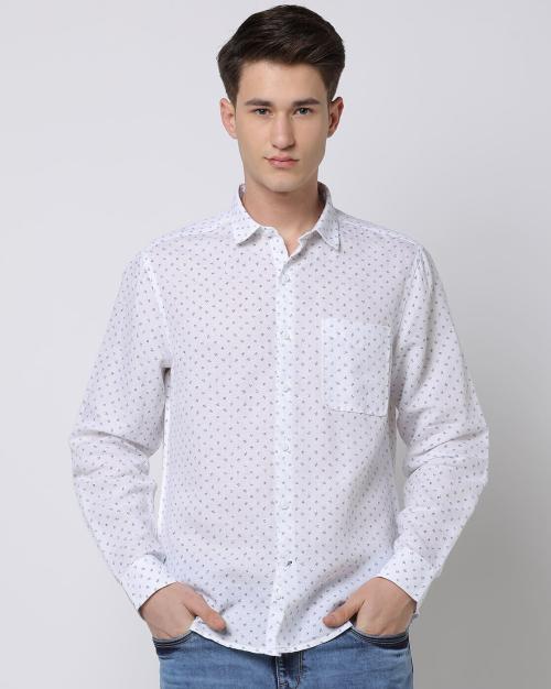 Men Leaf Print Slim Fit Shirt with Patch Pocket