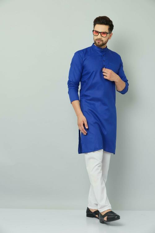 LemonX Men Royal Blue Solid Cotton Blend Kurta Pyjama Set (Xxl)