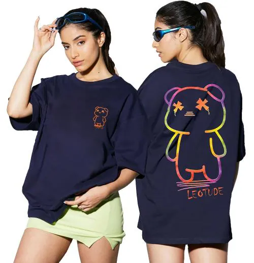 LEOTUDE Cotton Blend Half Sleeve Oversized T-Shirts for Women's