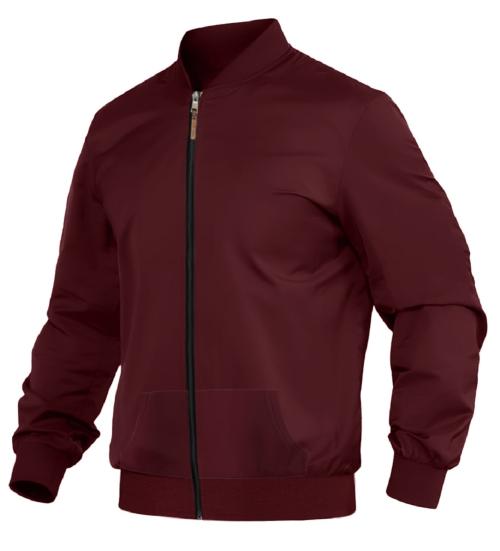 LEOTUDE Men's Regular Fit Bomber Jacket (Color: Maroon)