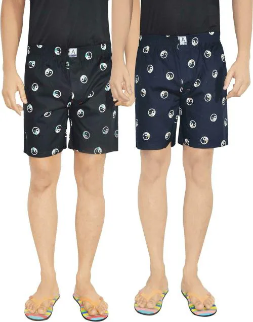 Levex Men Blue and Black Printed Cotton Blend Pack of 2 Boxer (Medium)