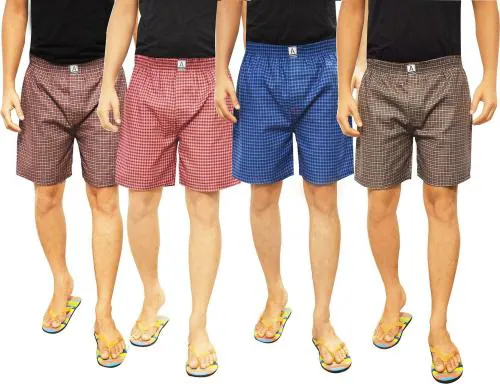 Levex Men Blue, Brown, Purple, Red Checkered Cotton Blend Pack of 4 Boxer (Medium)