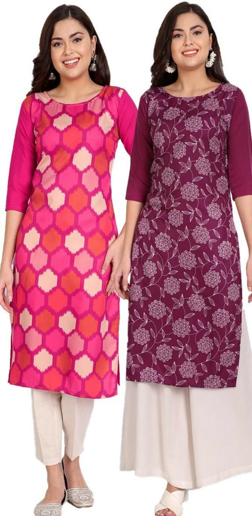LG Ck Fashion Women Multicolor Printed Crepe Pack Of 2 A-Line Kurta