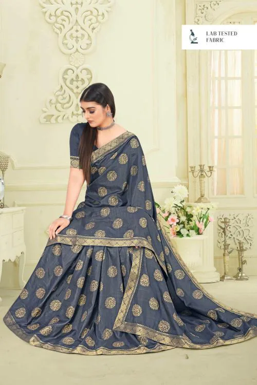LG Women Grey Floral Art Silk Kanjivaram Saree with Unstitched Blouse Piece