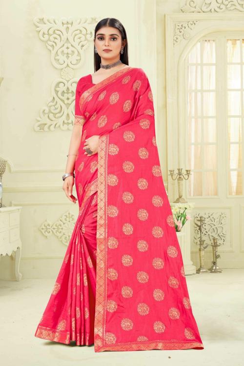 LG Women Pink Floral Art Silk Kanjivaram Saree with Unstitched Blouse Piece