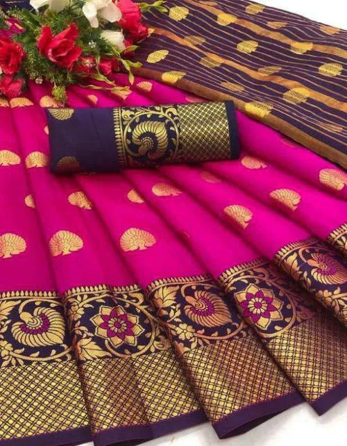 LG Women Pink Woven Design Jacquard Kanjivaram Saree with Unstitched Blouse Piece