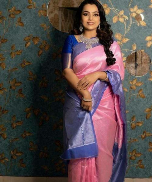 LG Women Pink Woven Design Jacquard Kanjivaram Saree with Unstitched Blouse Piece