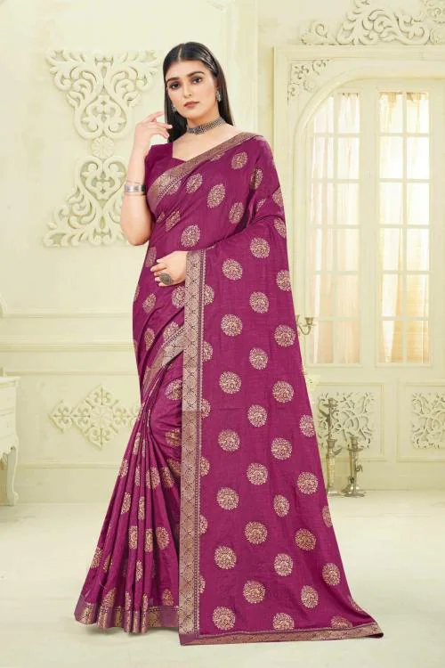 LG Women Purple Floral Art Silk Kanjivaram Saree with Unstitched Blouse Piece