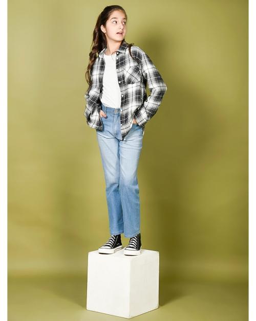 Lilpicks Girls Double Shaded Solid Straight Denim Jeans