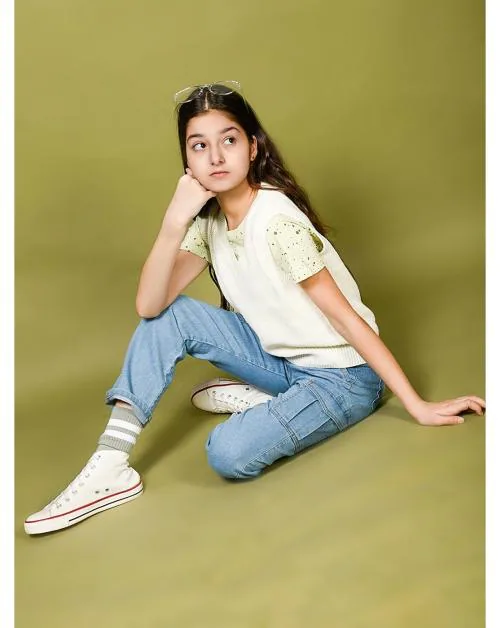 Lilpicks Girls Light Denim Wash Cargo Jeans Pant